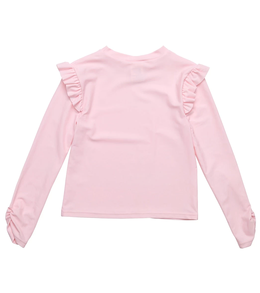 Pretty in pink and perfect for all swimming adventures, the Snapper Rock Girls’ Ballet Pink Long Sleeve Rash Guard (Toddler, Little Kid, Big Kid) features rouching at the sleeve hems and sweet shoulder frills on the sizes 2 – 6 years.