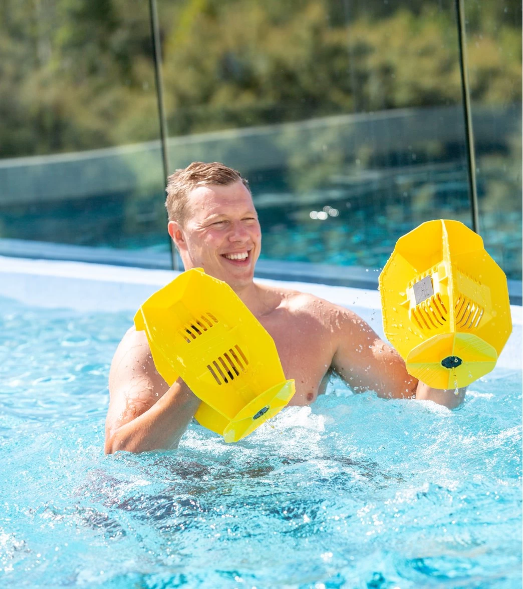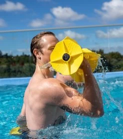 The Hydro-Tone Hydro-Bells are the perfect choice for those wanting to add more resistance to their Aquatic workouts. Their three-dimensional configuration is designed to enhance and take advantage of the total resistance field of water. Rotating the bells 90 degrees changes the drag surface area, allowing the user to adjust the level of resistance from medium to maximum.