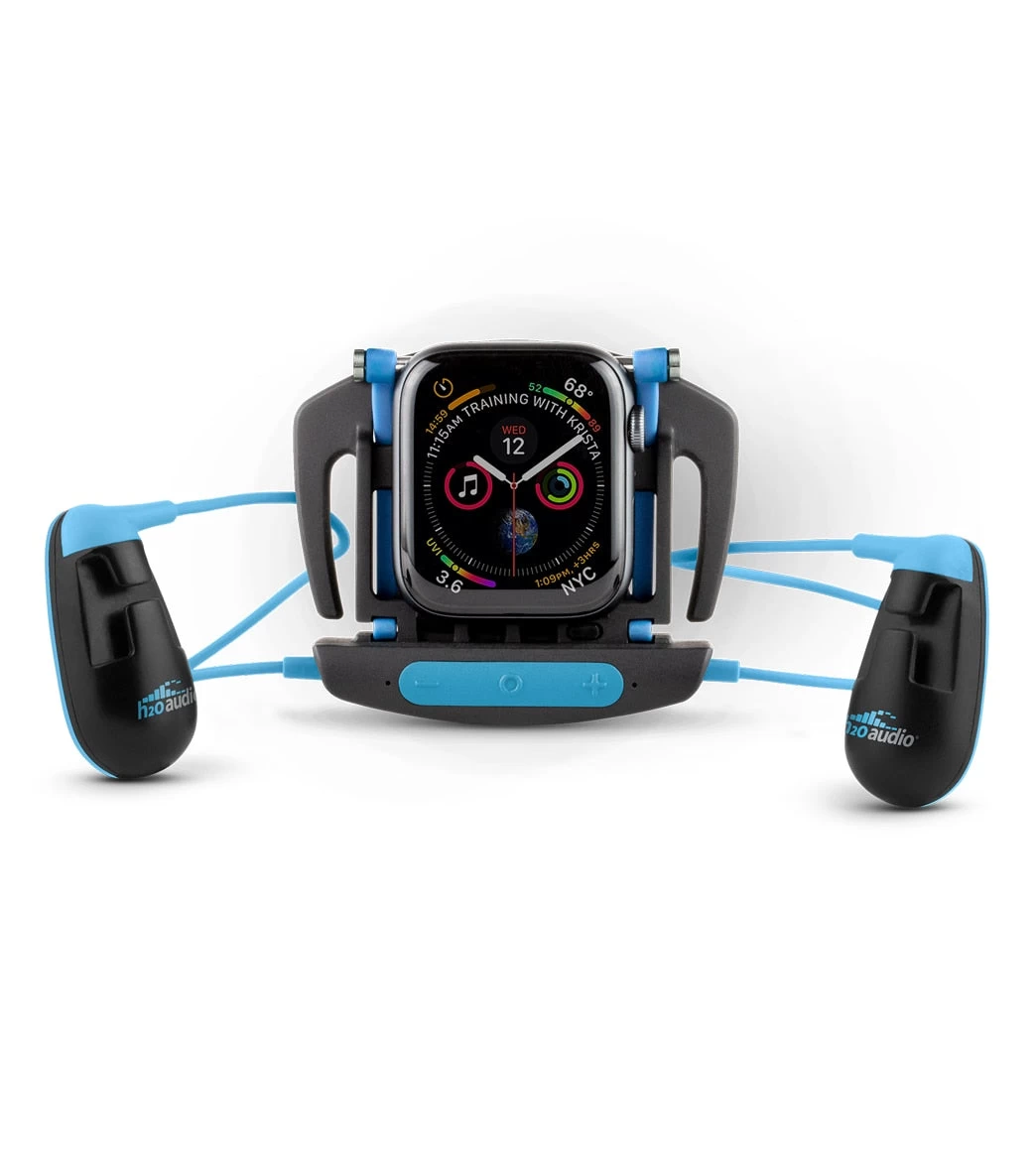 The H2O Audio Interval Swim Headphones for Apple Watch (Bone Conduction) is the only waterproof headphone system for Apple Watch, designed just for swimmers.
