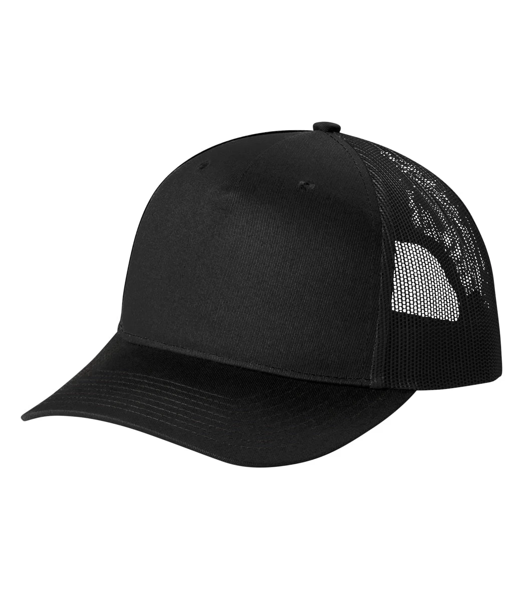 - Fabric:Â 100% cotton twill front panels and bill (Solids), 100% poly mesh back panels; 65/35 polyester/cotton twill front panels and bill (Heather Grey)