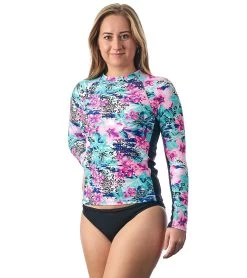 Stay covered but classy in the functional and stylish EQ Swimwear Women’s Tropical Jungle Rash Guard.