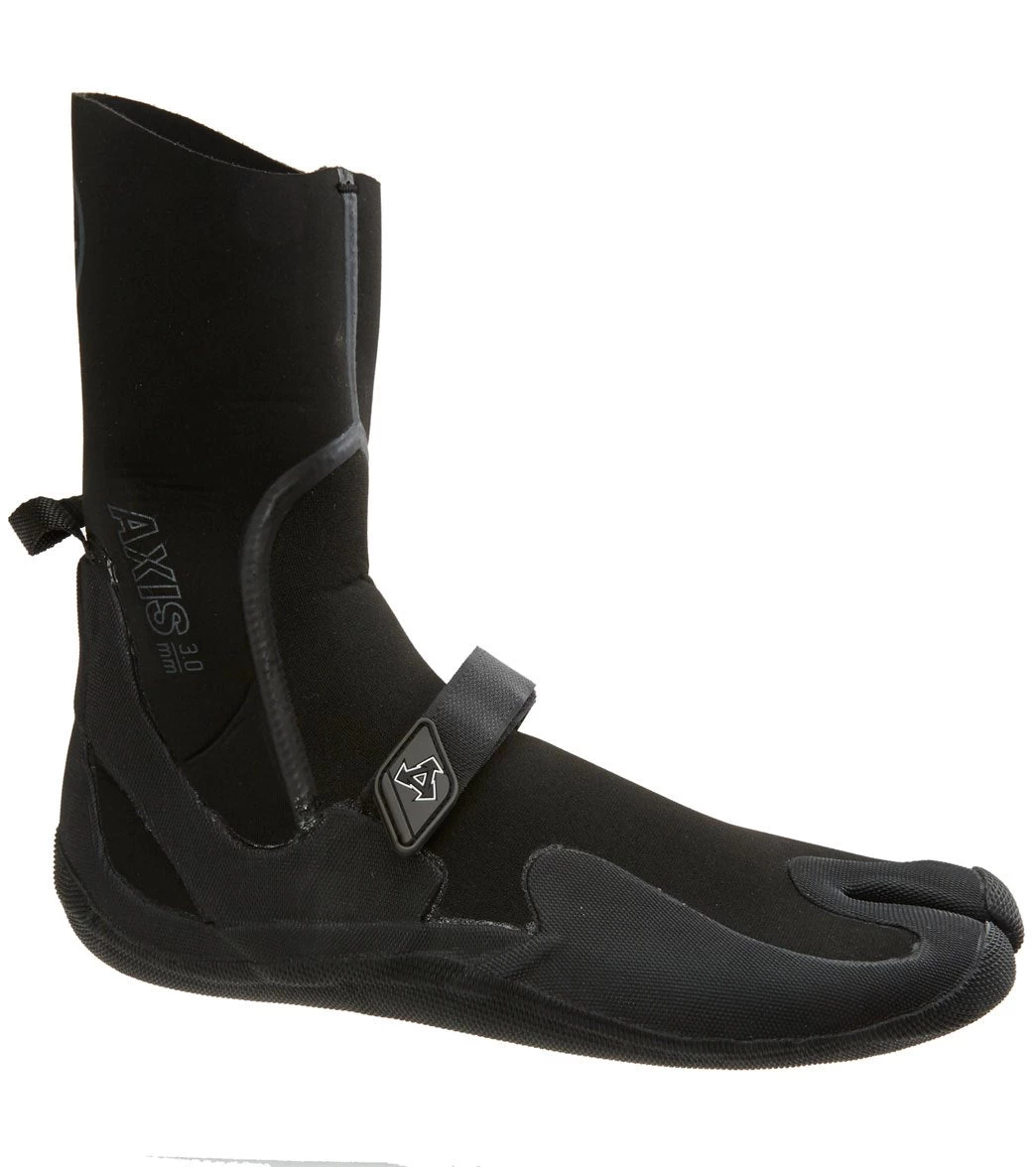 The Xcel Axis 3mm Split Toe Neoprene Bootie features a lockdown fit with an adjustable strap and a split toe design for better leverage on your board while surfing.