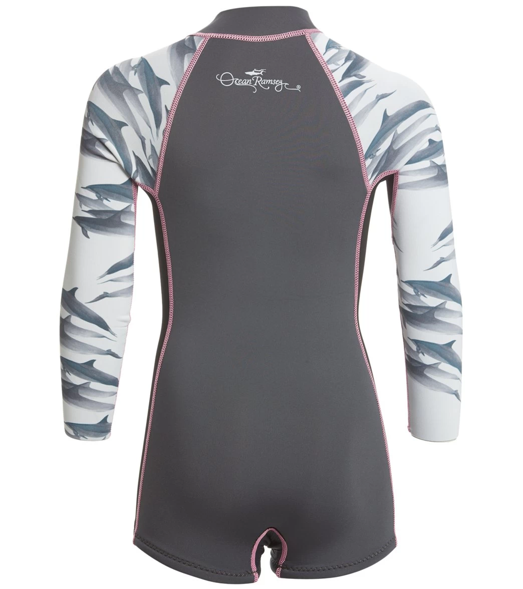 Surf with dolphins in the Xcel Girls’ Ocean Ramsey Axis 2MM Long Sleeve Front Zip Spring Suit. This front zip wetsuit features a stylish but conservative leg cut and unique dolphin and water prints that pay homage to the beautiful wonders of the ocean.